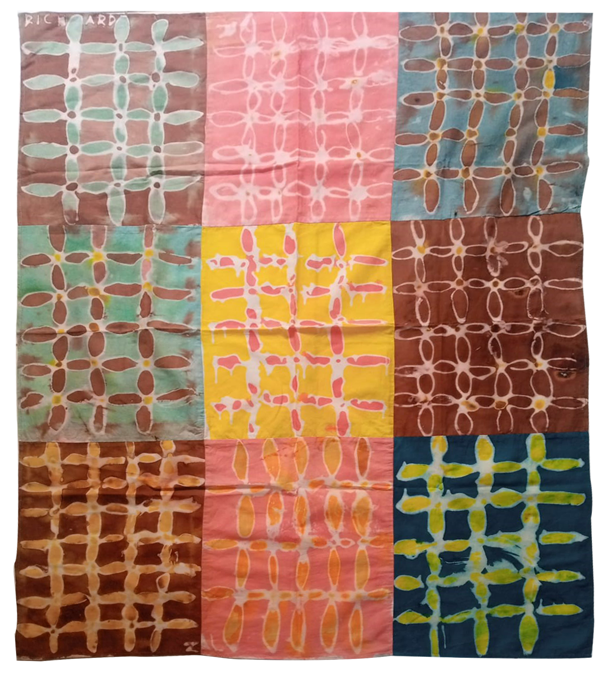 Ukuran : 119 cm x 89 cm Tahun : 2021 Deskripsi : Adalah sebuah kolase dari sembilan lukisan batik yang dibuat oleh sembilan remaja berkebutuhan khusus dari KIDSLAB HOMESCHOOLING & WORKSHOP. Motif Kawung sendiri dipilih karena Kawung merupakan interpretasi dari bunga lotus yang melambangkan kesucian dan panjang umur. Lukisan “KAWUNG PELANGI NUSANTARA” adalah tentang harapan para remaja berkebutuhan khusus di KIDSLAB HOMESCHOOLING & WORKSHOP agar Indonesia yang berwarna-warni dan beragam ini akan selalu berumur panjang.