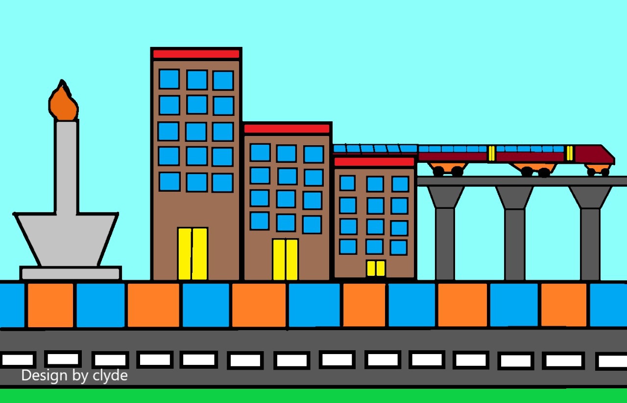Ukuran : A4 Tahun : 2021 Deskripsi : Tema kota metropolitan yang meliputi pemandangan monas dan LRT.