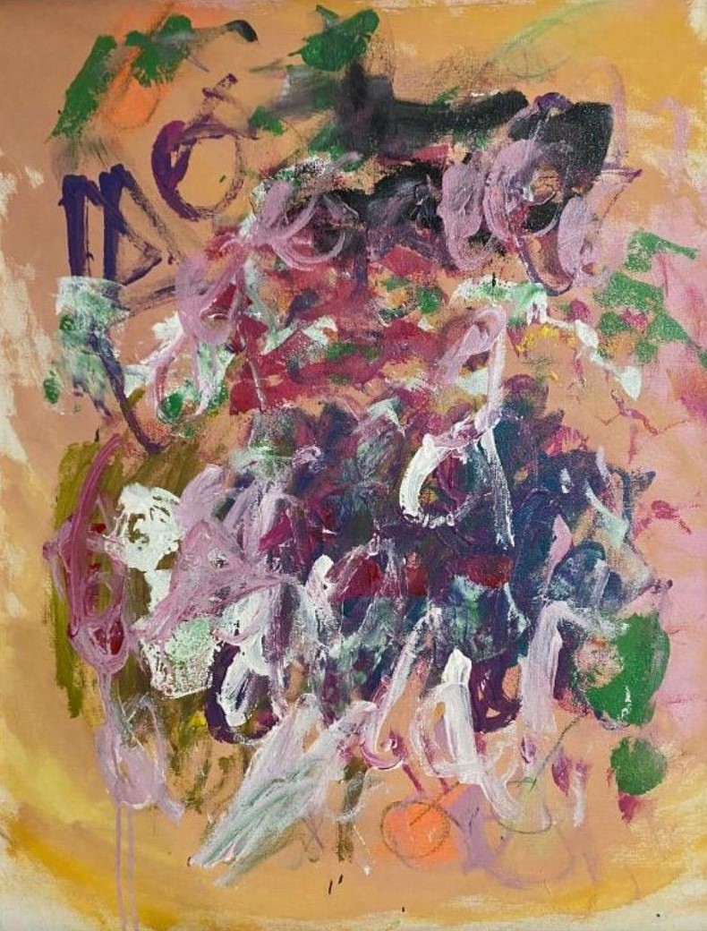Ukuran : 80 x 70 Tahun : 2015 Deskripsi : Senangnya dengan buah apel, jadi mengekspresikan lukisannya dengan buah apel.